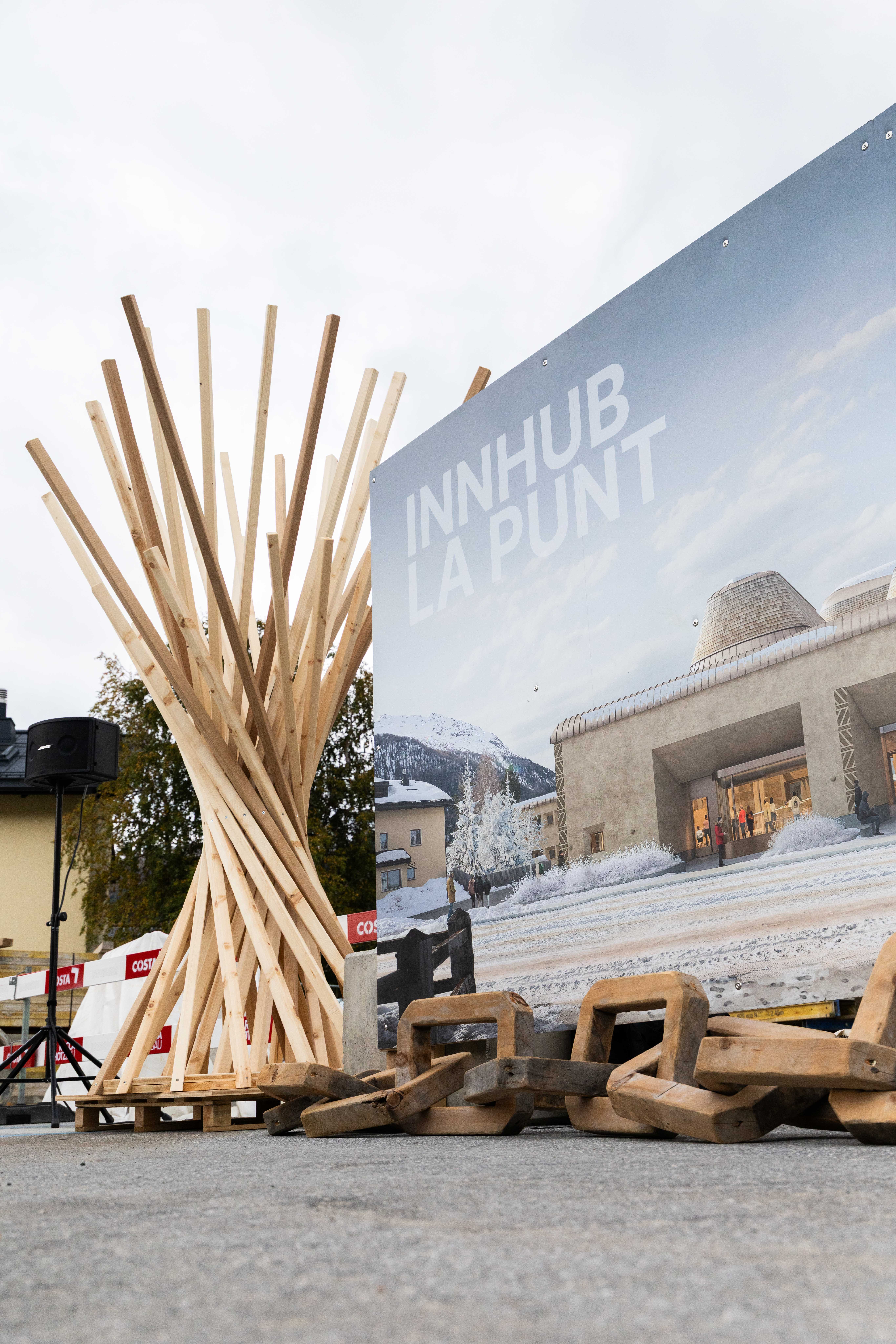 Zum Baustart des InnHub La Punt Ende September haben wir der Bauherrschaft den Generationenbaum überreicht. Er vereint drei Holzarten und steht damit für Vergangenheit, Gegenwart und Zukunft: